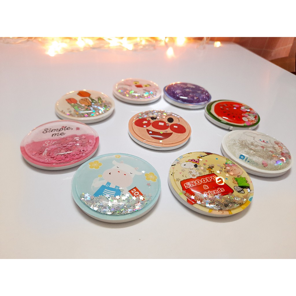 Phiên bản mới siêu cute của giá đỡ điện thoại/Popsocket có ánh nhũ kèm gương