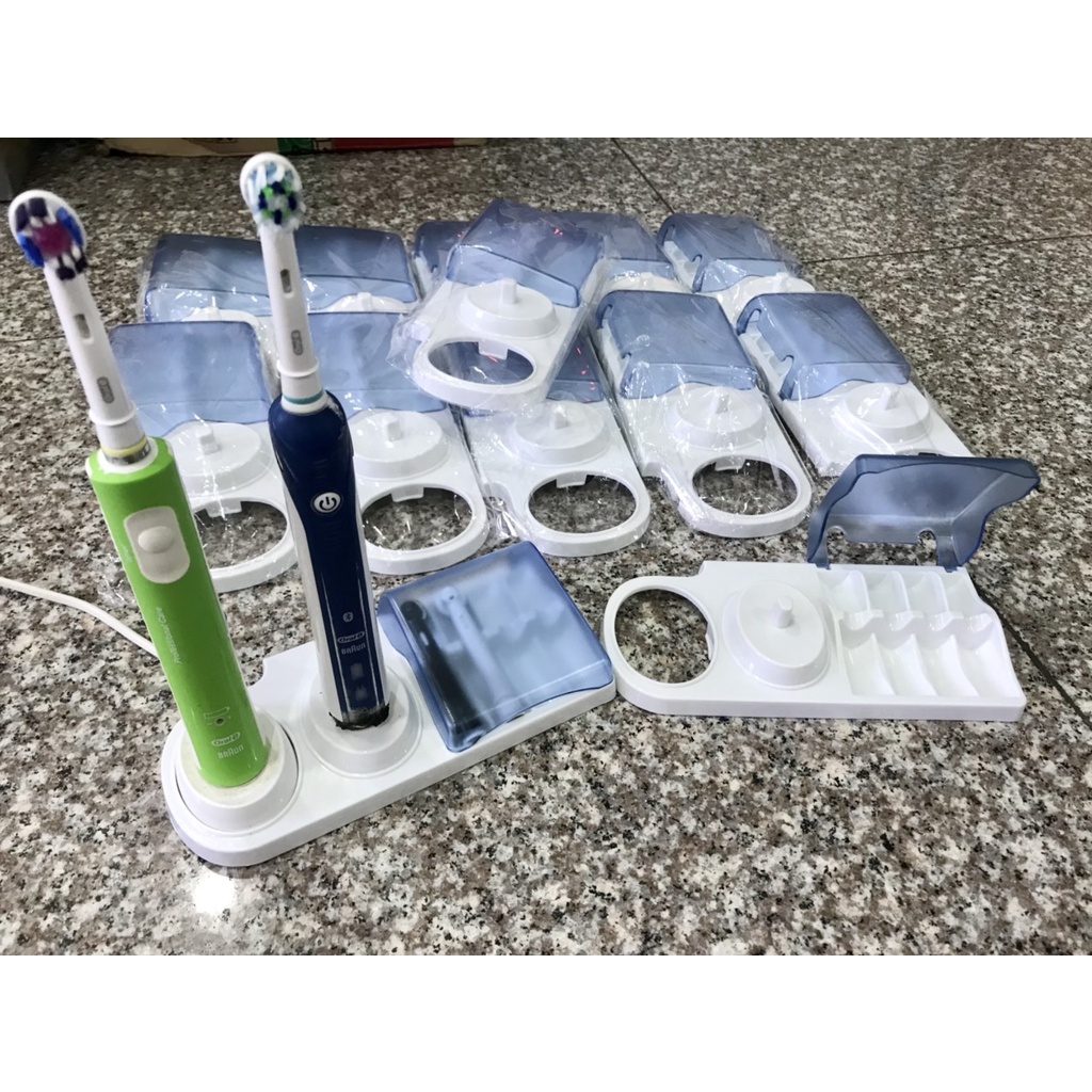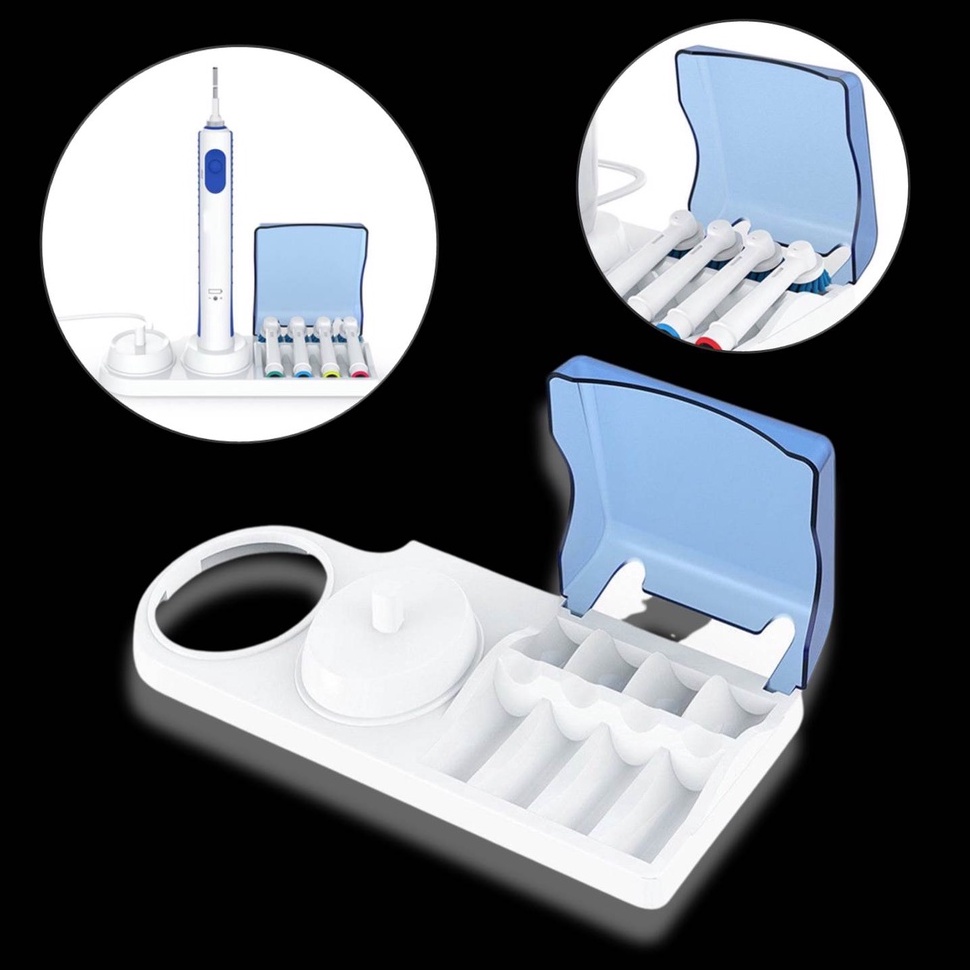 - Được thiết kế để giữ 4 đầu bàn chải đánh răng, 1 bộ sạc và 2 bàn chải đánh răng điện.