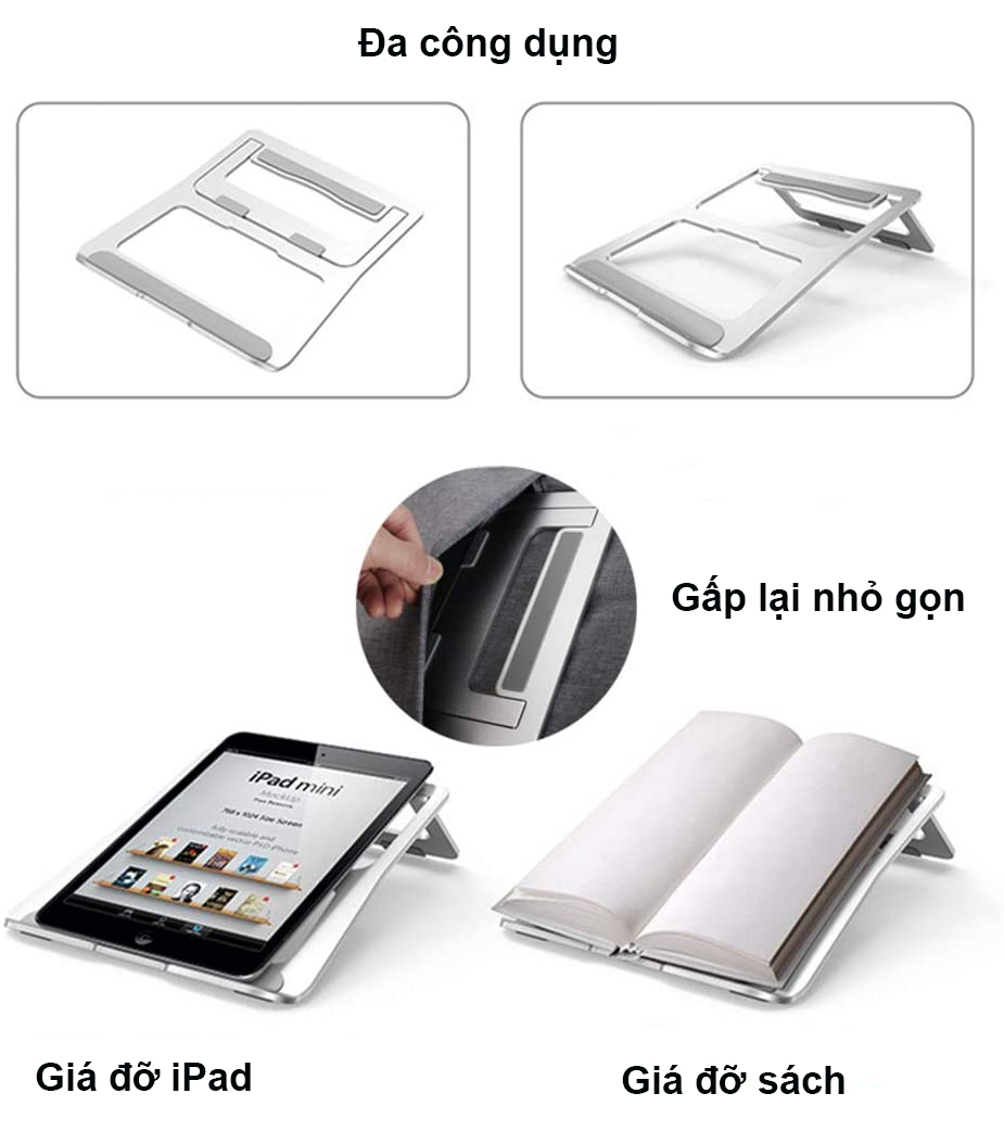 Giúp điều chỉnh vị trí đặt laptop cho phù hợp với góc nhìn của người dùngNâng máy tính lên ngang tầm mắt giúp làm việc và học tập thoải mái hơn, giảm các vấn đề về xương khớpChất liệu hợp kim nhôm c...- Giao hàng toàn quốc