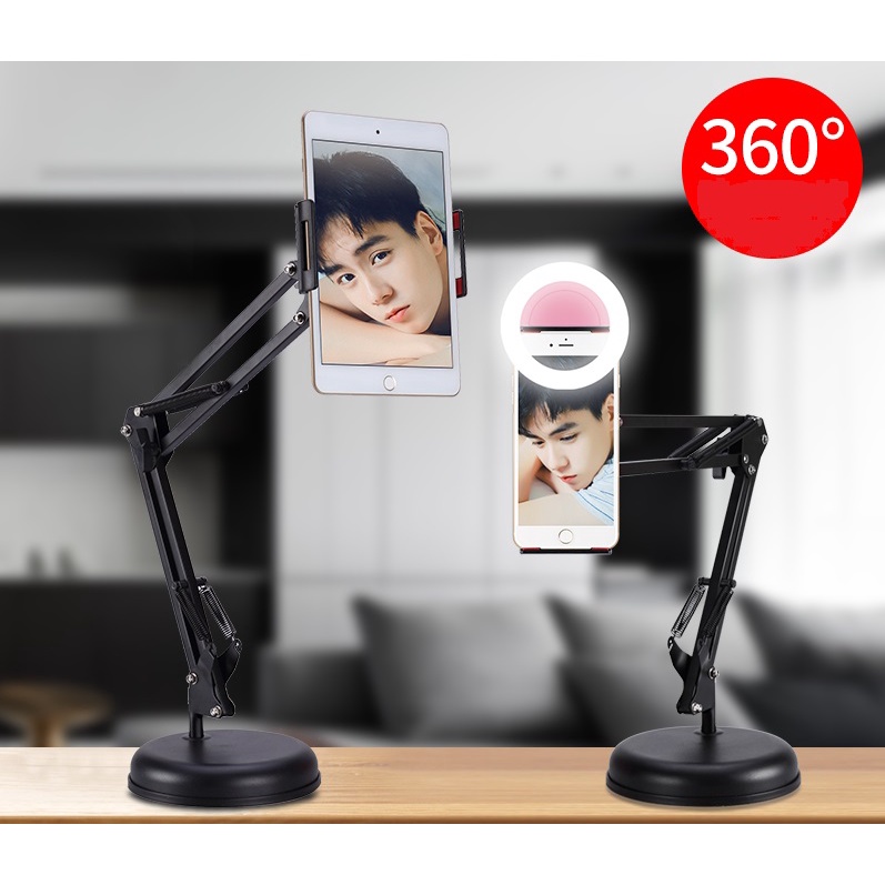 Giá đỡ điện thoại xoay 360 độ đế tròn chắc chắn, bạn có thể đặt ở bàn làm việc, đặt ở trên giường, có chiều cao lý tưởng đúng tầm nhìn của mắt để xem phim , xem youtube trên điện thoại,ipad, bạn sẽ không bị mỏi cổ , mỏi tay hay thay đổi tư thế xem phim trên điện thoại thông minh của bạn.Kẹp điện thoại thông minh xoay 360 độ này có thể gấp lại, tháo lắp dễ dàng thích hợp dùng để livestream, hát karaoke, xem phim, hoặc họp trực tuyến tại bàn làm việc của mình cùng đồng nghiệp, hoặc tận dụng làm Giá kẹp điện thoại ipad đầu giường để thư giãn xem phim sau 1 ngày mệt mỏi