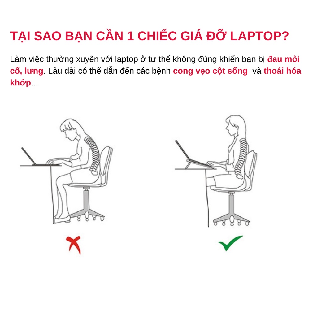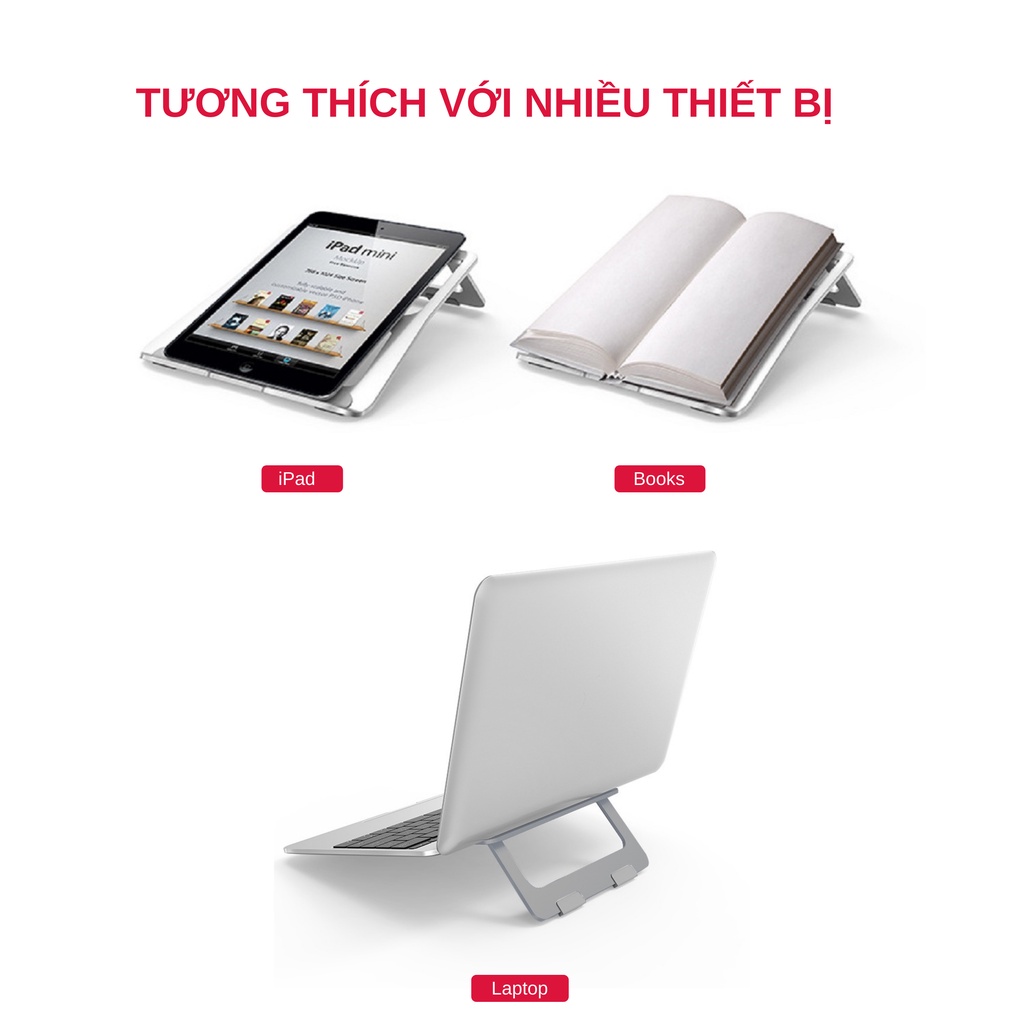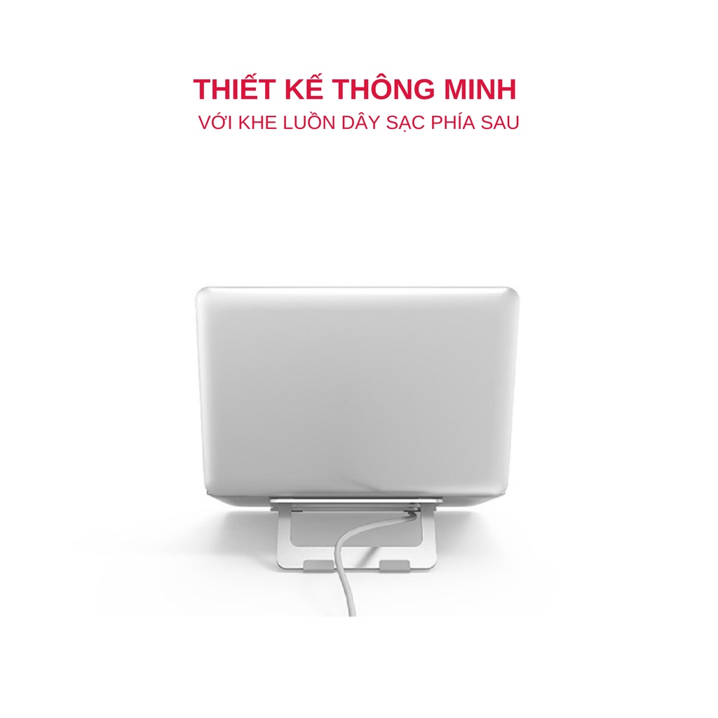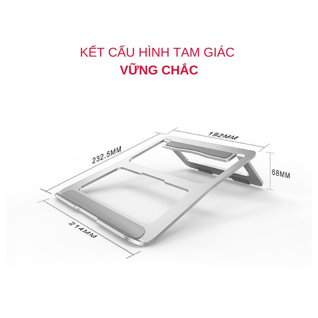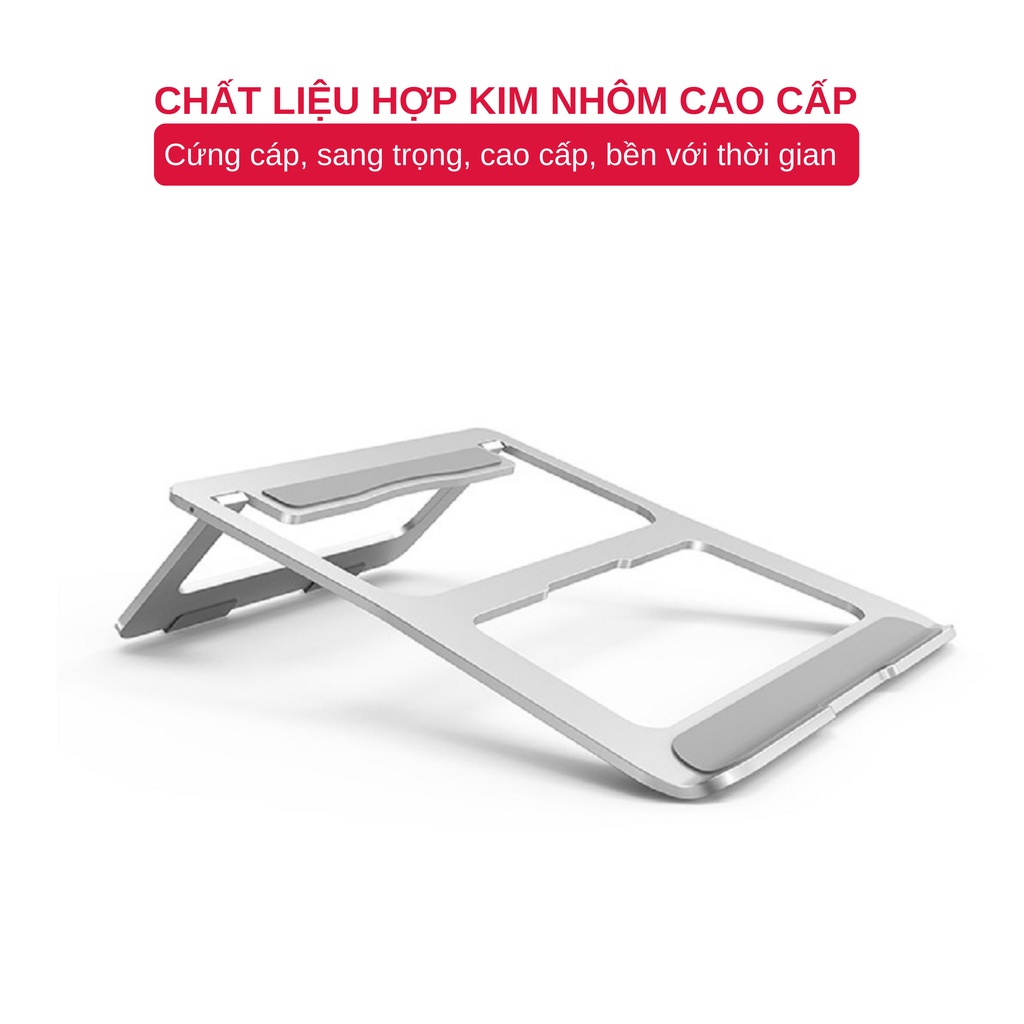 Giúp điều chỉnh vị trí đặt laptop cho phù hợp với góc nhìn của người dùngChất liệu hợp kim nhôm cao cấp,bền bỉ, sáng bóng