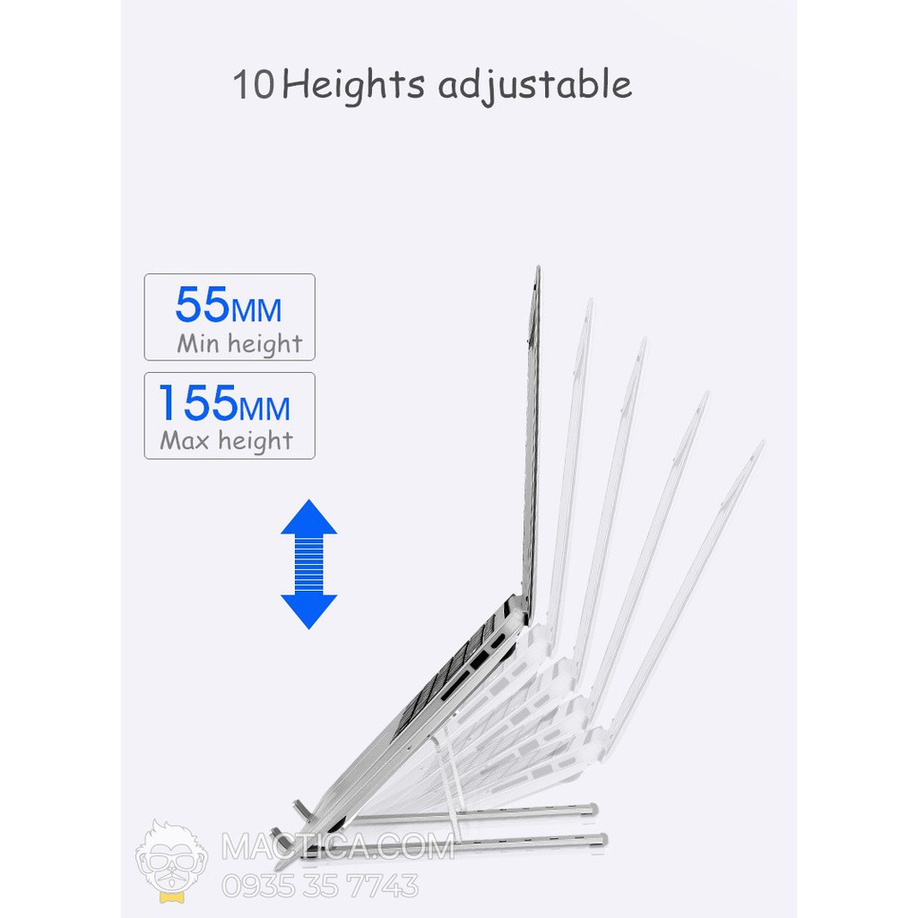 GIÁ ĐỠ, KỆ ĐỠ LAPTOP, ĐẾ TẢN NHIỆT CHO MACBOOK, MÁY TÍNH VỚI 9 NẤC ĐIỀU CHỈNH ĐỘ CAO