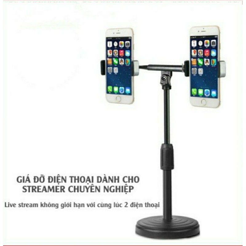 Giá Đỡ Điện Thoại Kẹp 2 Cái Cùng Lúc Dùng Livestream, Xem Phim