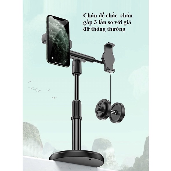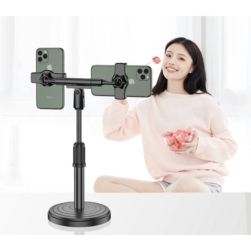 Giá đỡ điện thoại để bàn, giá kẹp 2 điện thoại để bàn, dùng livestream chuyên nghiệp.Chất liệu hợp kim chắc chắn.