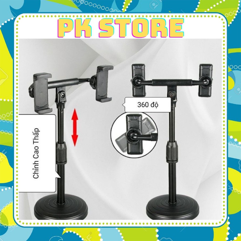 Giá Đỡ Điện Thoại 2 kẹp livestream xem video Ổn Định Xoay 360 Độ dùng để Quay Phim Ghi Hình Đa năng