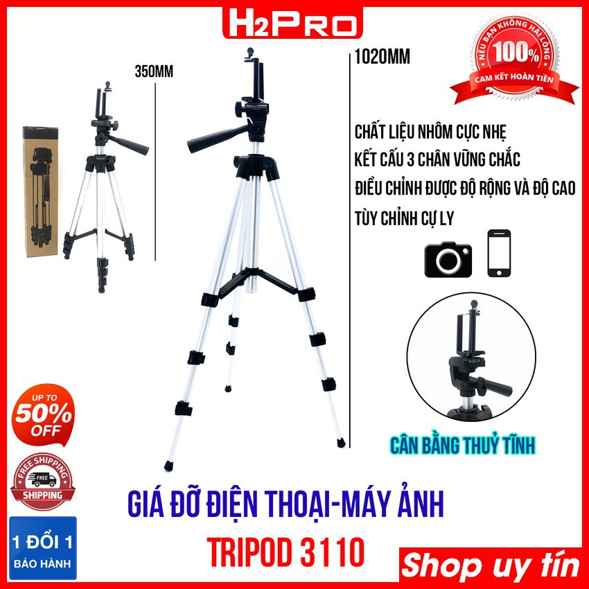 Giá đỡ điện thoại 3 chân Tripod 3110 H2Pro chính hãng, giá đỡ 3 chân cho điện thoại-máy ảnh cao 1m