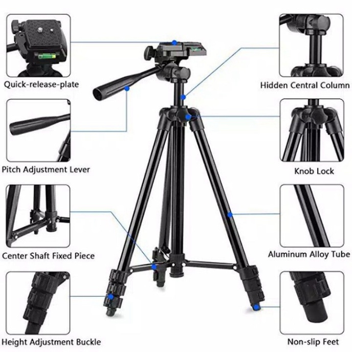- Giá đỡ chụp ảnh Tripod 3110, 3120 gồm 4 phần của chân nhôm kéo dài. Giá đỡ chụp ảnh Tripod 50cm có 2 phần nhôm kéo dài.