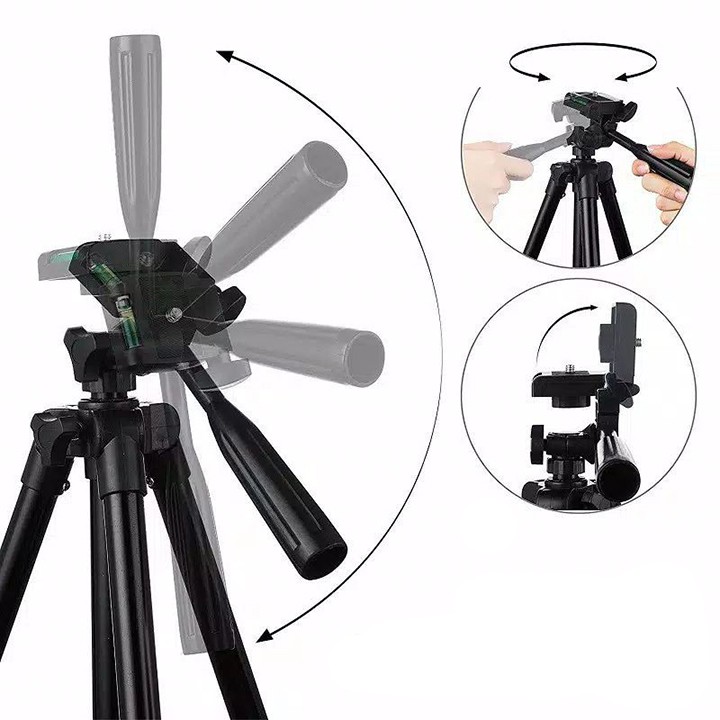 - Xoay đầu tripod: 3 cách xoay, 360 độ