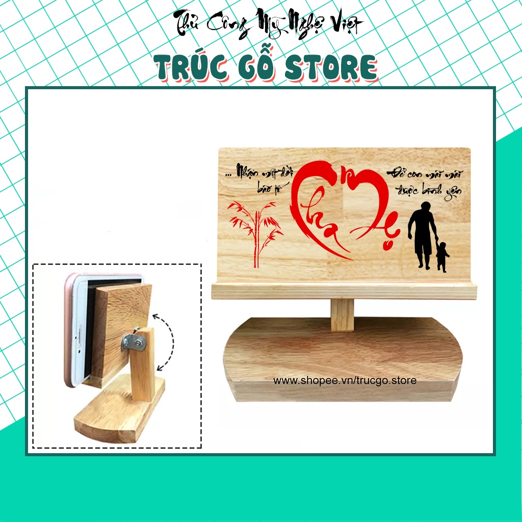 Giá đỡ điện thoại bằng gỗ viết chữ thư pháp, xem phim, nghe nhạc tiện lợi - chữ Cha Mẹ
