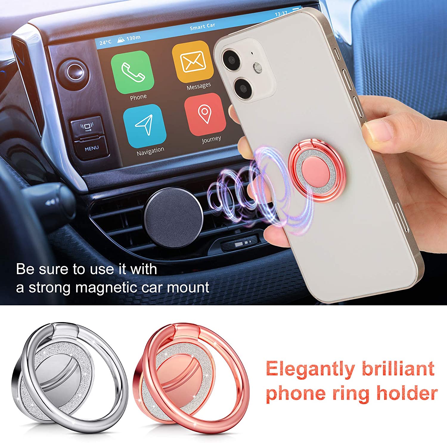 [Universal Cell Phone Ring Holder] [360° Rotation Metal Phone Finger Kickstand Compatible with iPhone & Android Phone(Work with Magnetic Car Mount)]