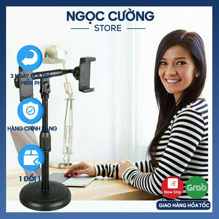 Giá đỡ điện thoại, kẹp điện thoại đa năng, chắc chắn xoay ngang, dọc, hướng lên, hướng xuống rất tiện lợi.