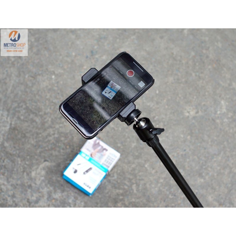 + Bộ sản phẩm gồm : chân gấp gọn + bi cầu q29 + kẹp điện thoại 2 chiều + remote