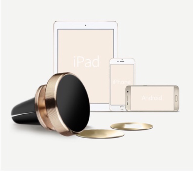 - Giá đỡ sử dụng lực nam châm ở phần đế để hút miếng sắt dán trên điện thoại