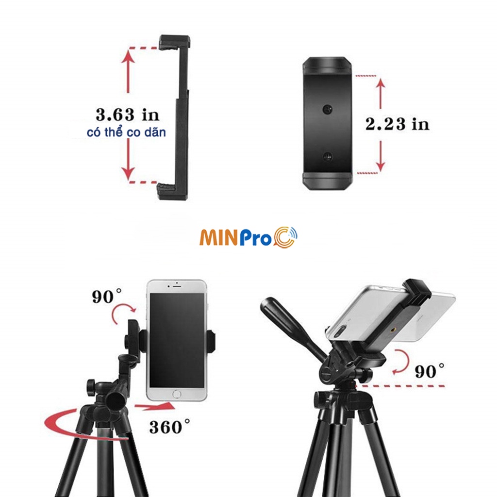 Giá đỡ điện thoại chụp ảnh kèm kẹp điện thoại 3 chân remote tương thích với nhiều dòng máy MINPRO