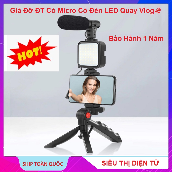 Giá Đỡ Điện Thoại, Có Đèn Led, Có Micro Thu Âm - Quay Vlog Shot Kit - Chụp Ảnh Quay Video - TikTok - Livestream