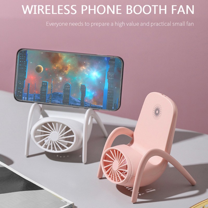 Đây là một chiếc quạt kiêm làm giá đỡ điện thoại di động, nhỏ gọn và linh hoạt. Có thể mang theo bên mình hoặc đặt trên bàn.