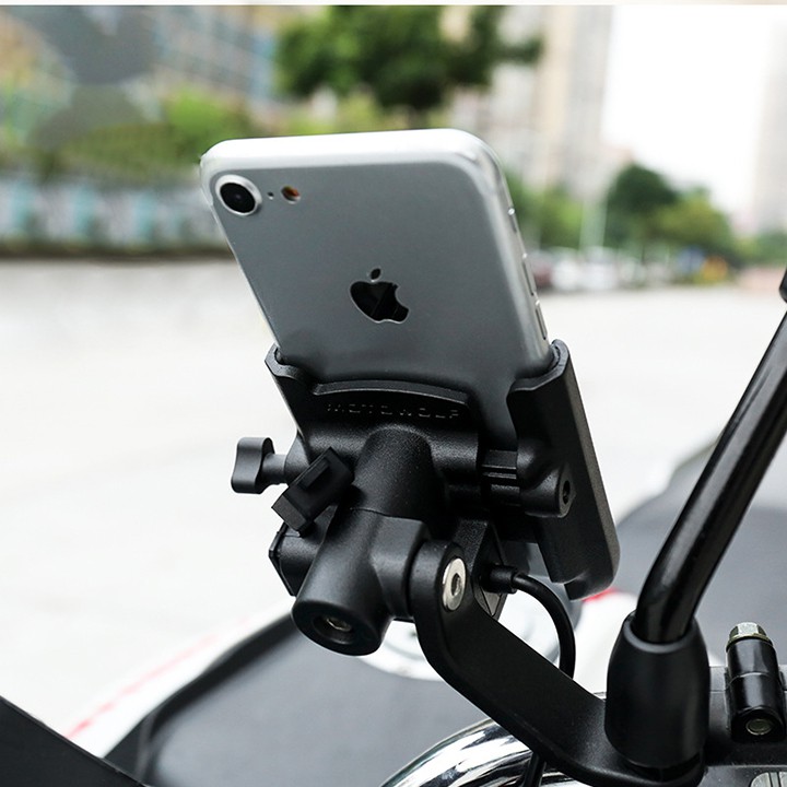 Giá đỡ điện thoại có sạc gắn chân kính xe máy Motowolf