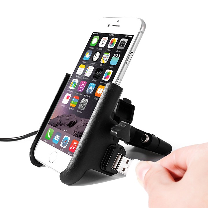 Giá đỡ điện thoại có sạc gắn chân kính hoặc ghi đông xe máy, xe đạp, moto