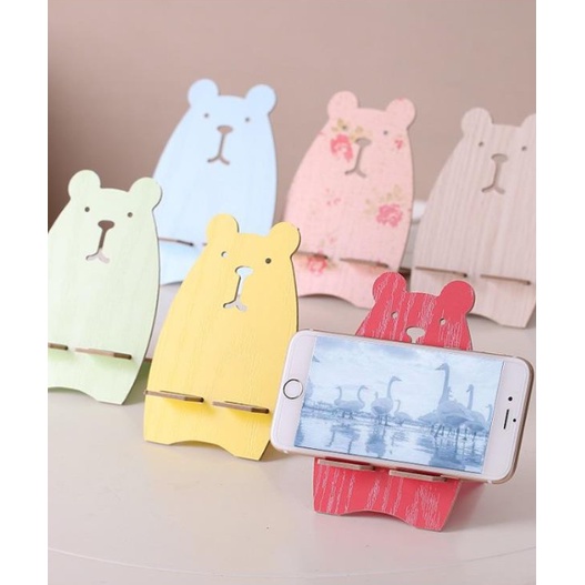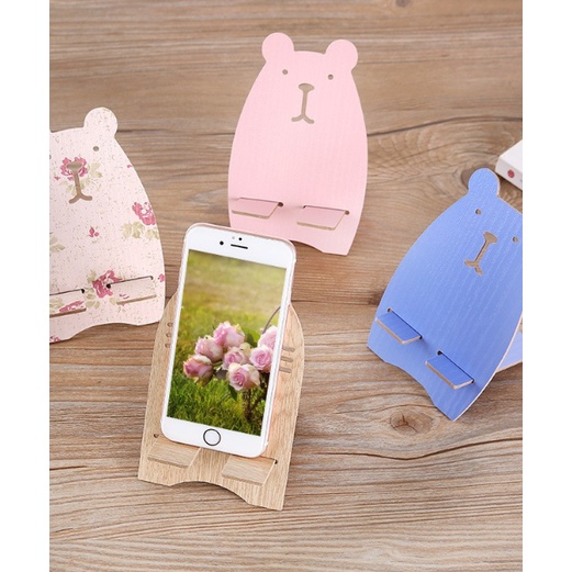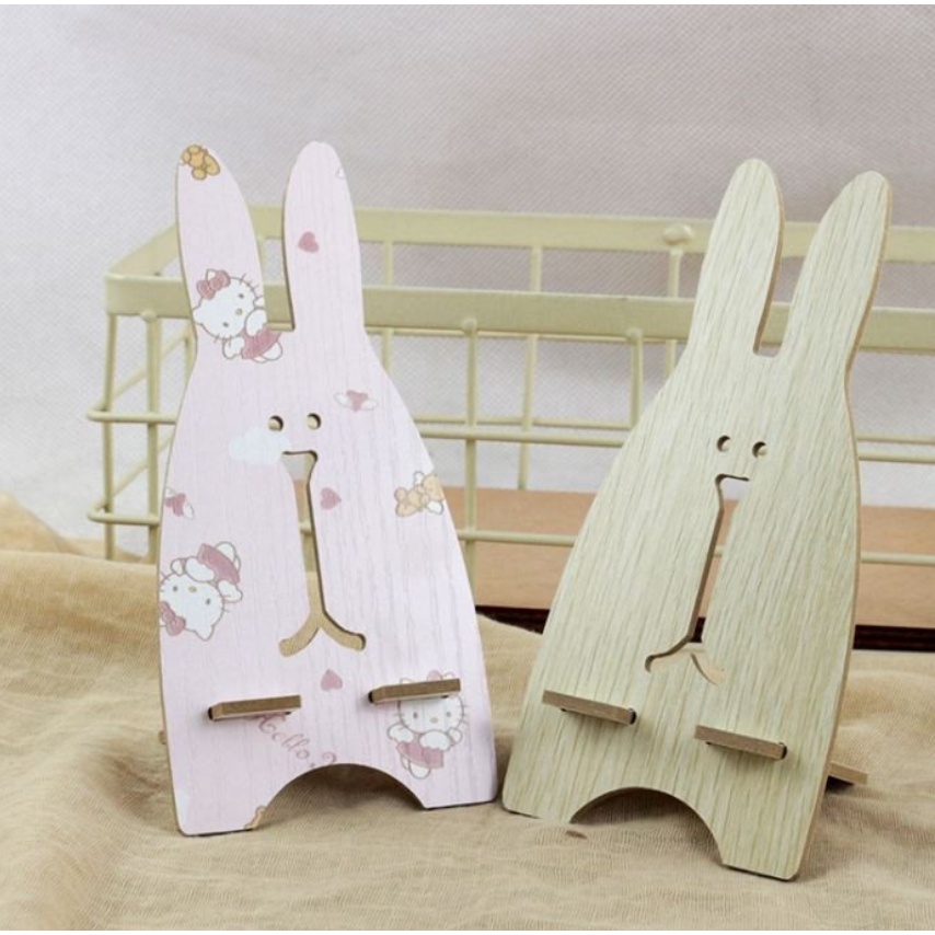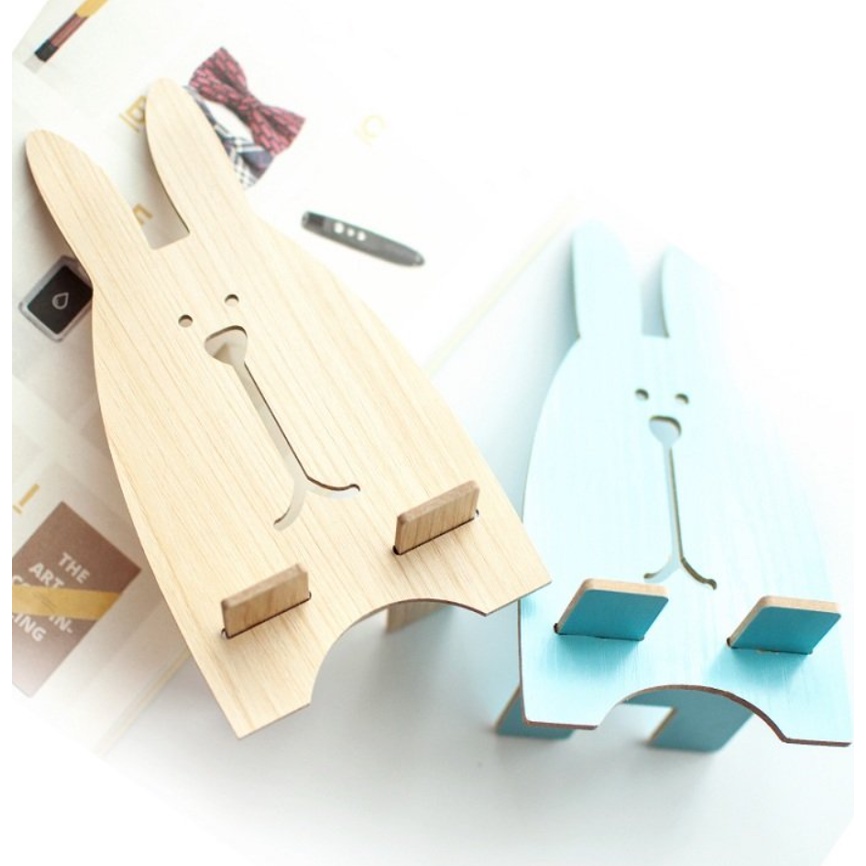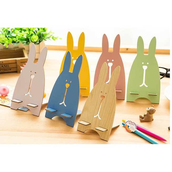 Giá đỡ điện thoại bằng gỗ với kiểu dáng thỏ và heo đáng yêu.