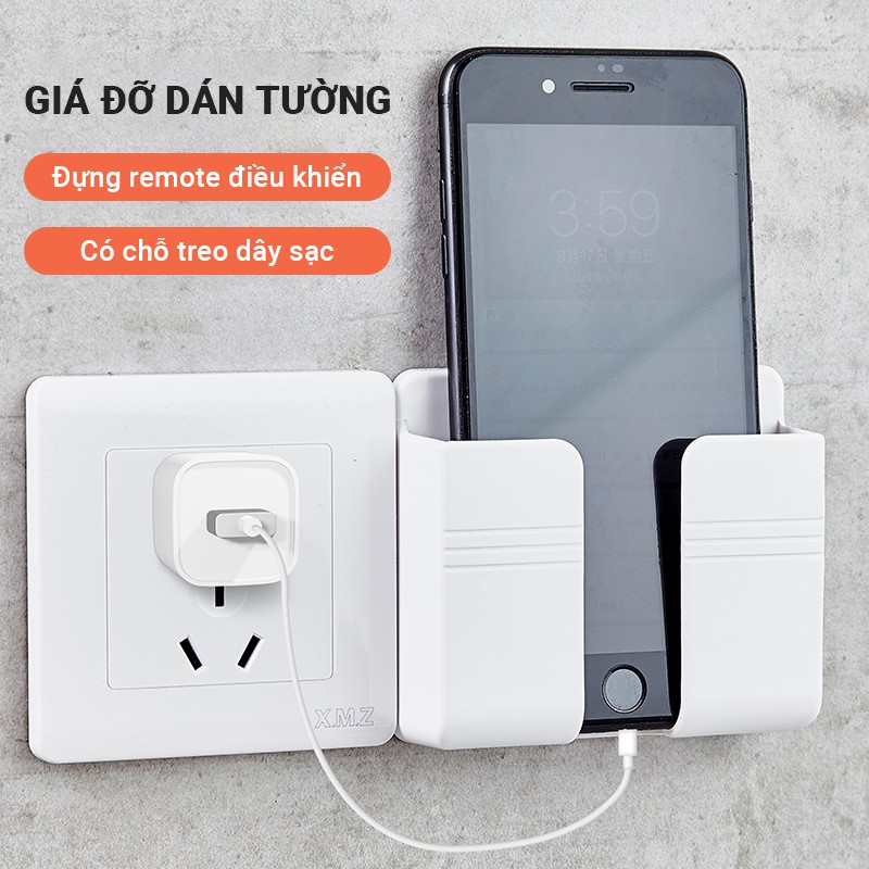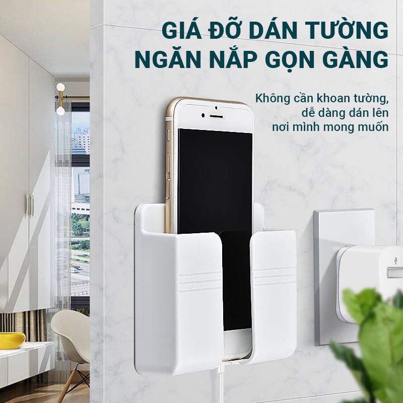 Giá đỡ điện thoại dán tường GJ4 giữ điện thoại cố định khi sạc pin có thể đựng remote tivi/máy lạnh, dễ dàng lắp đặt