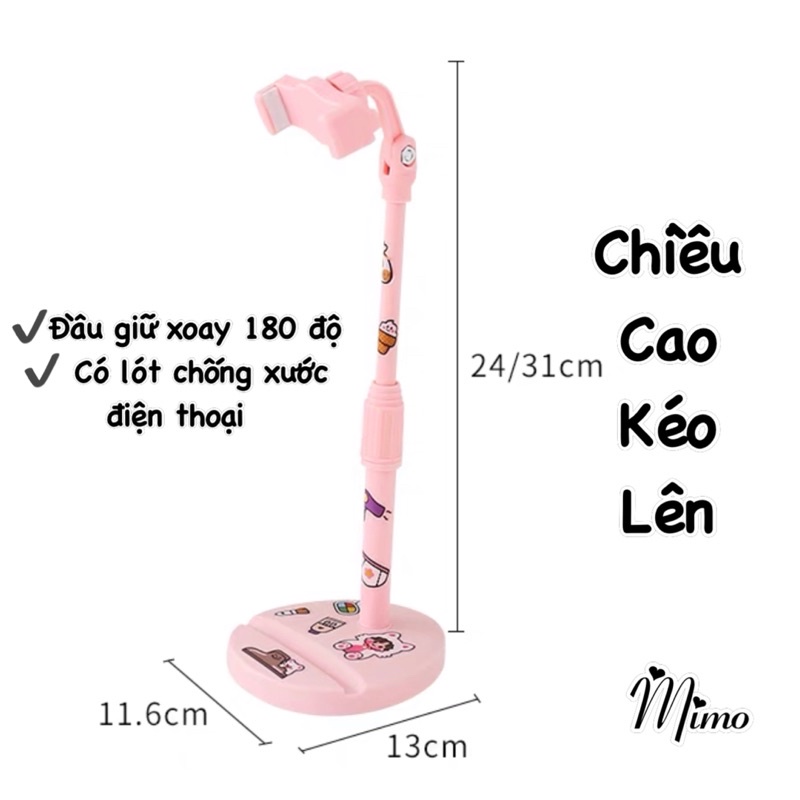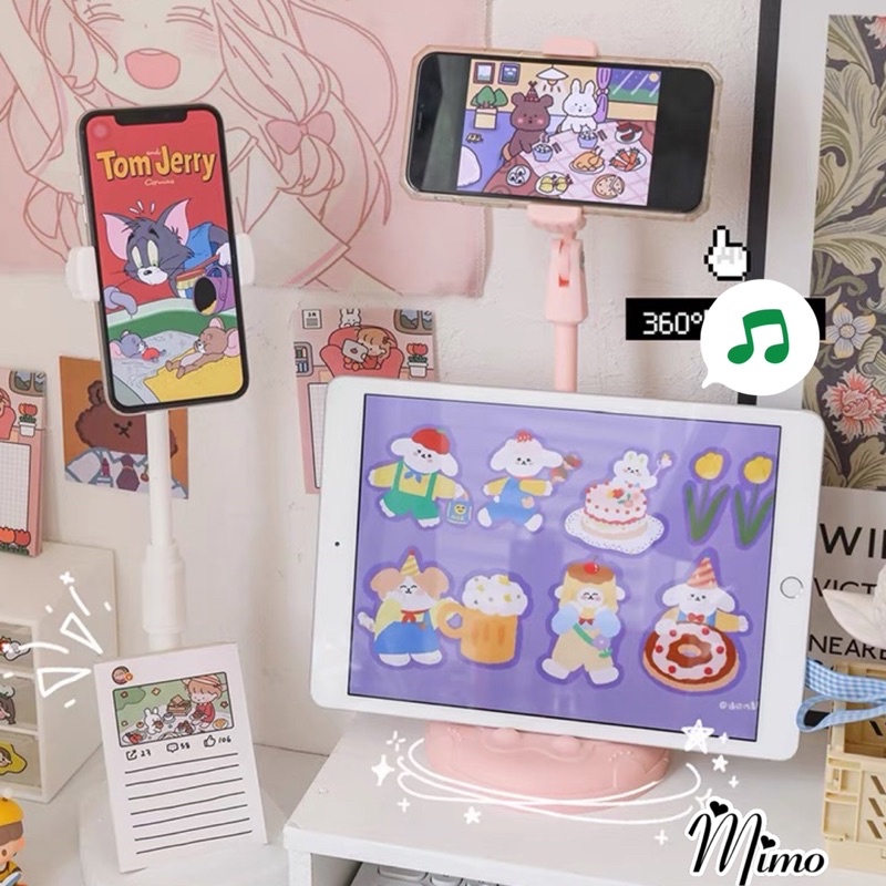 Giá đỡ điện thoại để bàn dễ thương kẹp điện thoại, giá đỡ ipad xoay 360 độ thông minh đế chân tròn đa năng