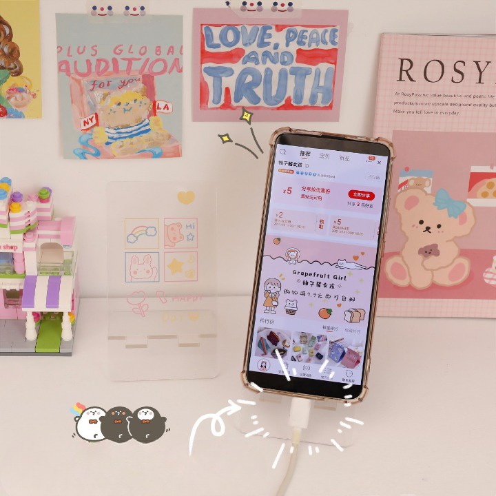 Điện Thoại & Phụ Kiện > Phụ kiện > Khác || Giá đỡ điện thoại để bàn, kệ để điện thoại trong suốt in hình ngộ nghĩnhCòn hàng