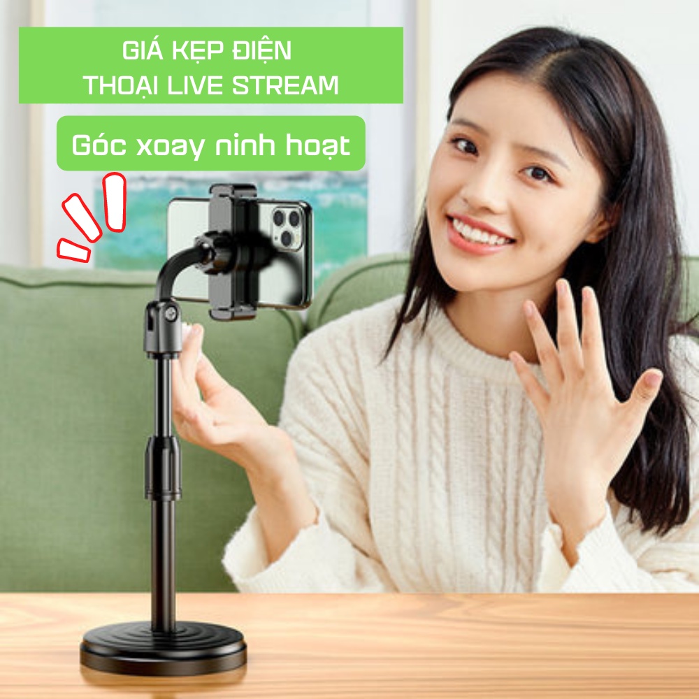 GIÁ đỡ điện thoại để bàn kẹp điện thoại Livestream xem video xoay 360 độ ATILA SHOP