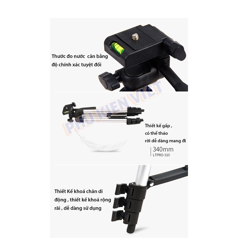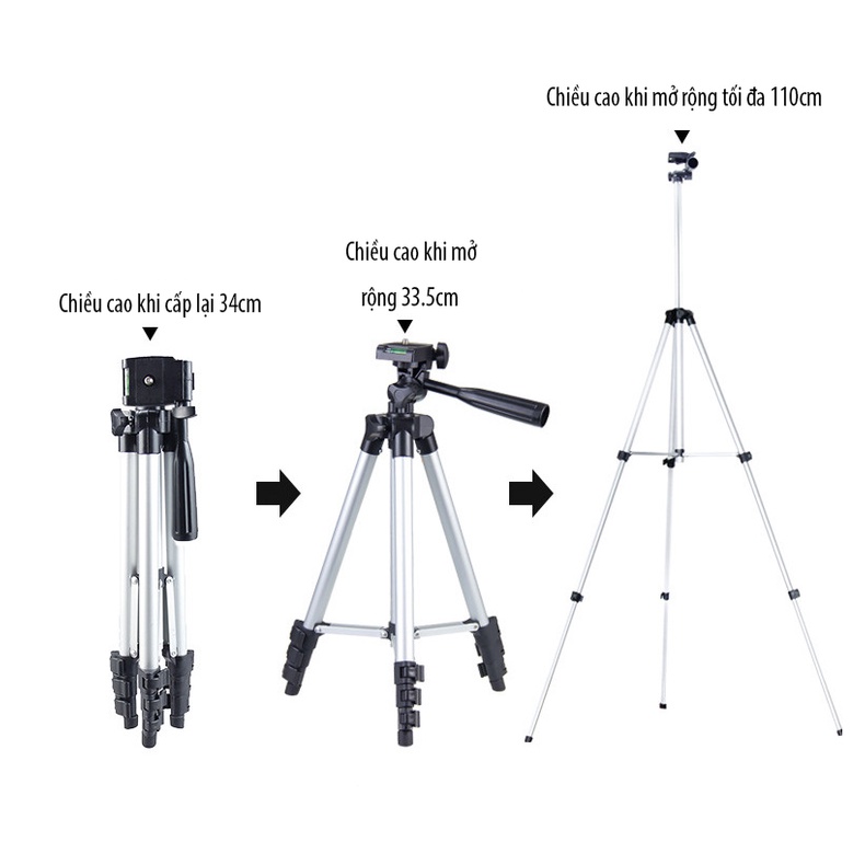 - Giá đỡ chụp ảnh Tripod 3110 gồm 4 phần của chân nhôm kéo dài. Giá đỡ chụp ảnh Tripod 50cm có 2 phần nhôm kéo dài.
