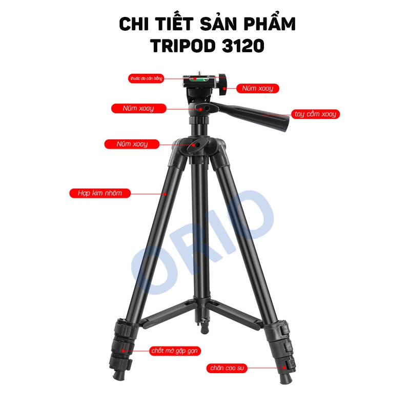 Giới thiệu Giá đỡ điện thoại để bàn tripod 3120 ba chân có tay cầm tặng kèm đầu kẹp - ORIO