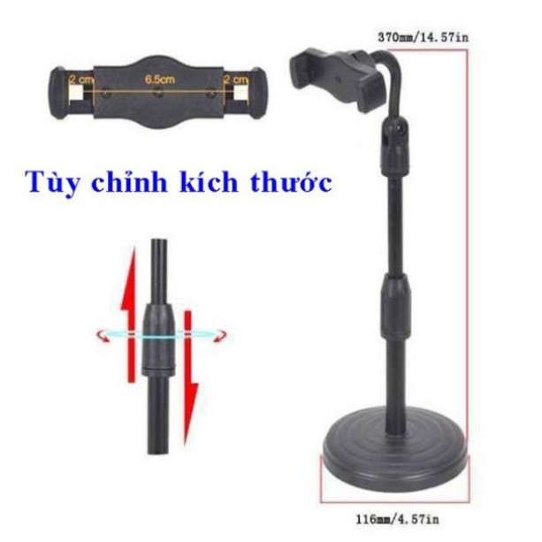 Giới thiệu Giá Đỡ Điện Thoại Để Bàn Livestream - Tăng Giảm Chiều Cao Xoay 360 Độ Loại Đế Nặng