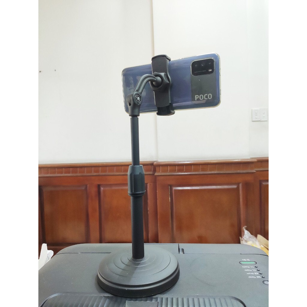 - Chân tròn rất chắc chắn làm điểm tựa cho cây đứng vững . Có thể quay mọi phía Nó hoàn toàn phù hợp với nhu cầu quayphim hoặc live stream để trên bàn. Chân đế chắc chắn, được làm bằng nhựa ABS, chịu được va đập cao