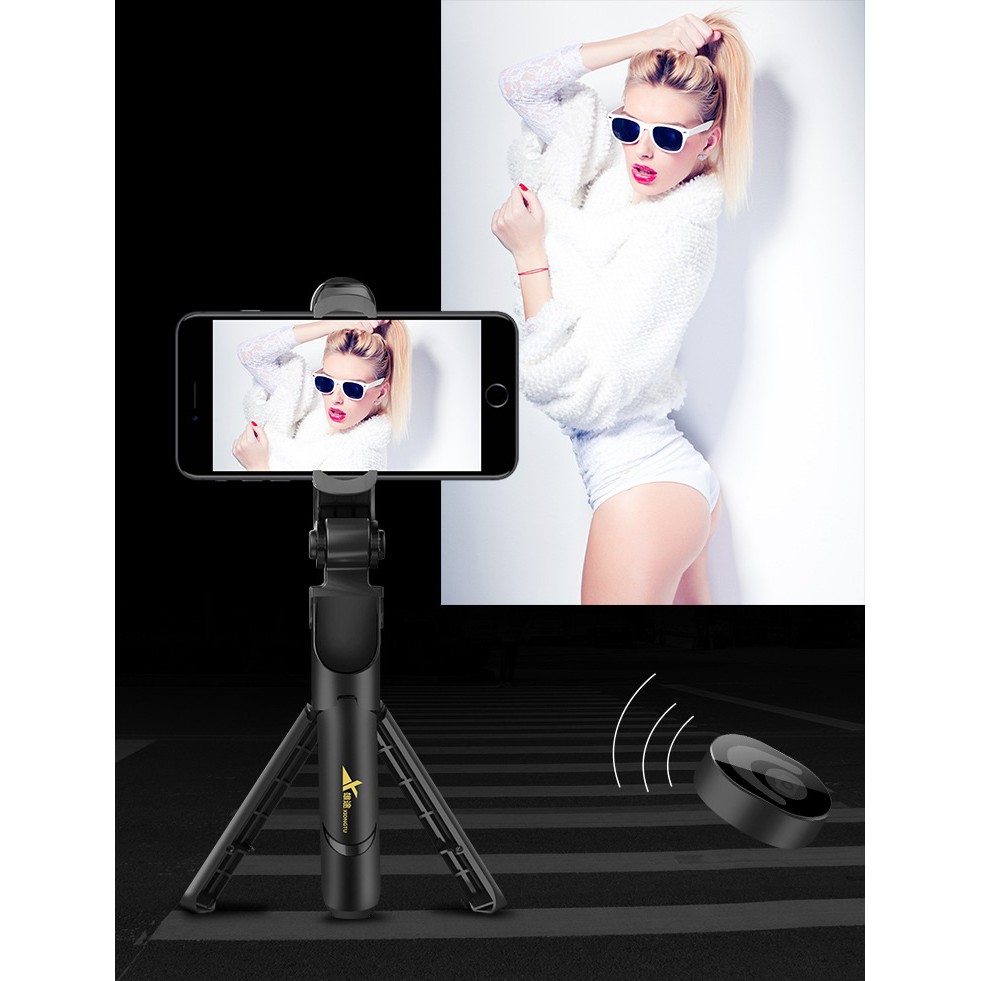 Điện Thoại & Phụ Kiện > Phụ kiện > Phụ kiện selfie > Gậy selfie || Giá đỡ điện thoại di động đế 3 chân bluetooth,Gậy chụp điện thoạiCòn hàng