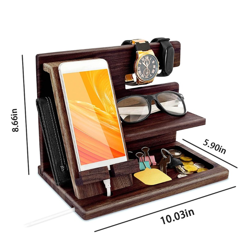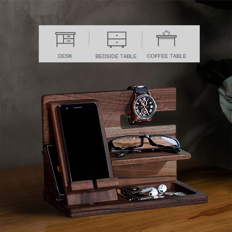 Giá đỡ điện thoại bằng gỗ Đế cắm ví đựng đồng hồ Ví đựng đồng hồ Kính chìa khóa Hộp lưu trữ để bàn Trình tổ chức trưng bày đầu giường Đầu giường ngủ Nam giới Quà tặng cho Văn phòng tại nhàĐặc điểm: