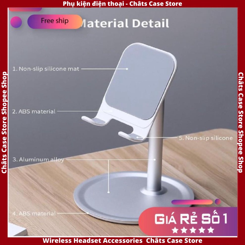 ✔ Chất liệu: Hợp kim nhôm + Nhựa ABS + silicone (Thân và đế là hợp kim nhôm, tay đỡ bằng nhựa ABS)