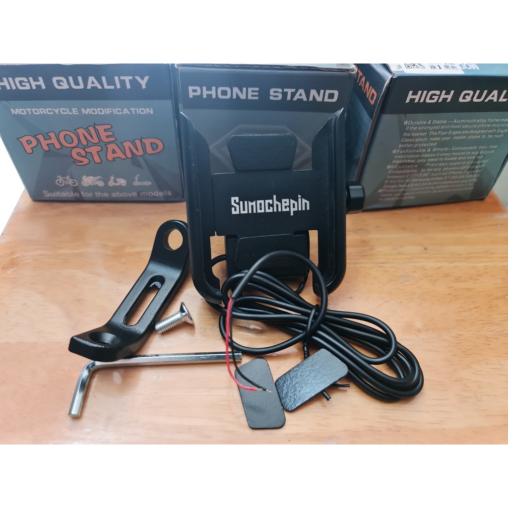 Mô tô, xe máy > Phụ kiện xe máy > Giá đỡ điện thoại || Giá đỡ điện thoại gắn chân kính có sạcSo sánh giá ×