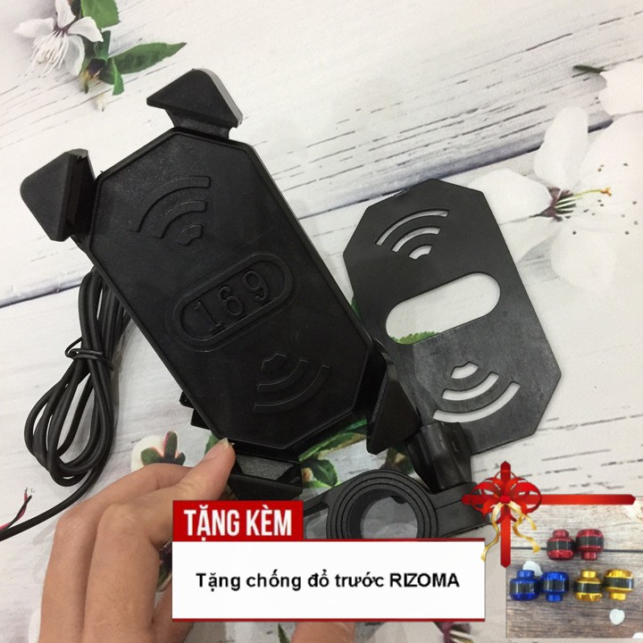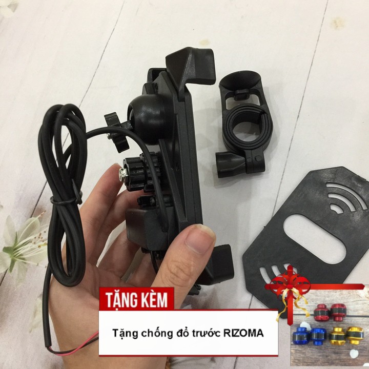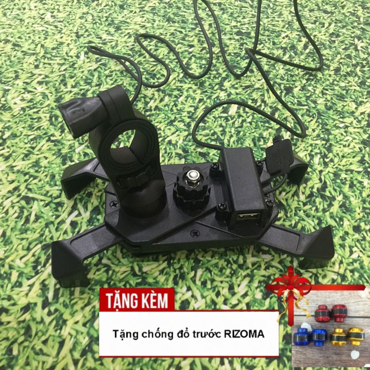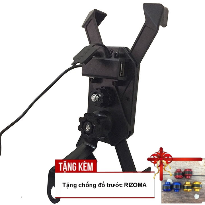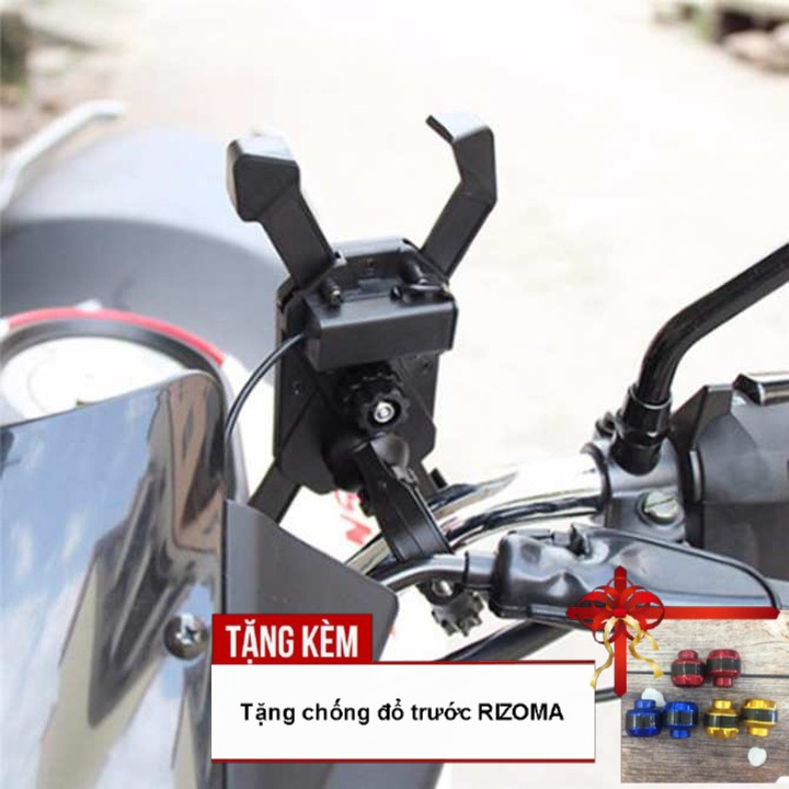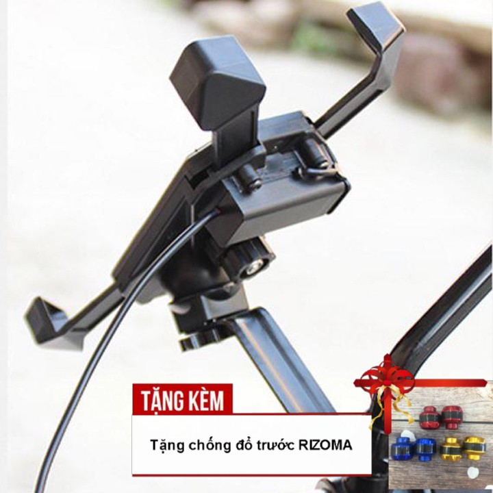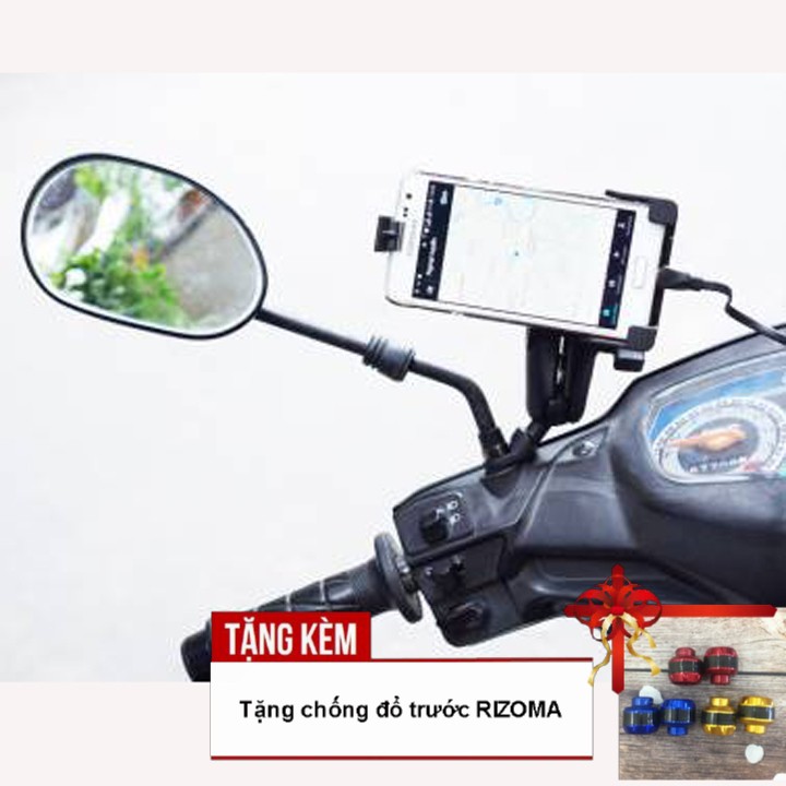 Giá đỡ điện thoại gắn trên mô tô, xe máy có USB sạc điện thoại A220-TK35 - Tặng kèm chống đổ trước tròn trơn