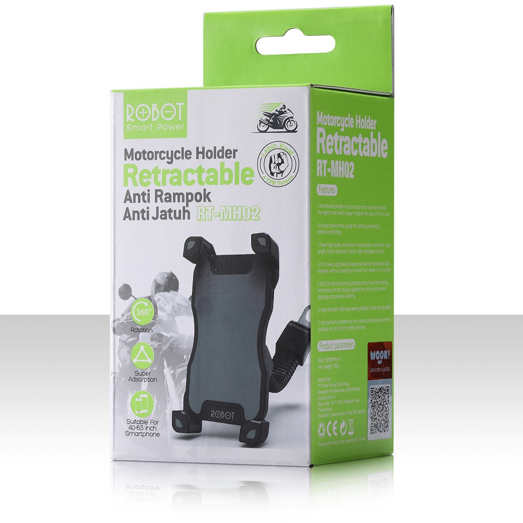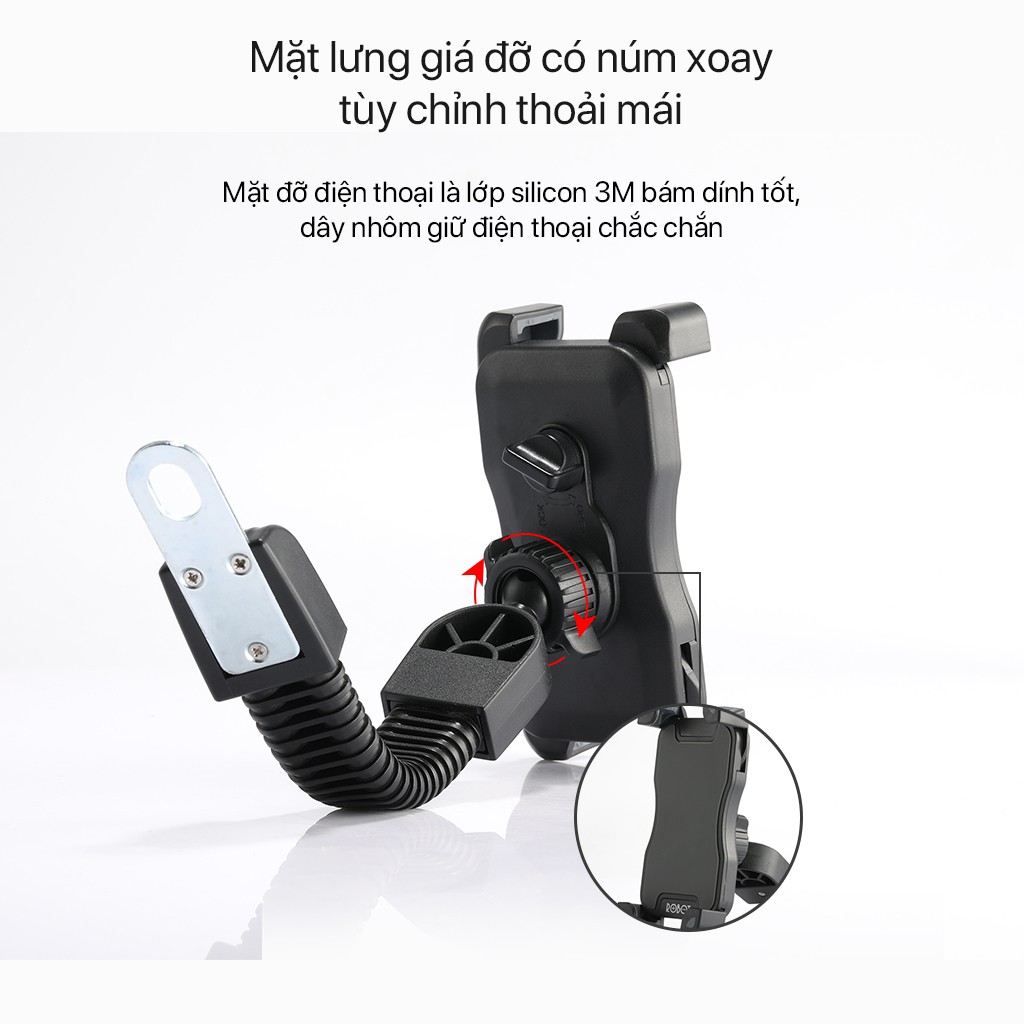 Giá Đỡ Điện Thoại Gắn Xe Máy ROBOT RT-MH02 Khớp Xoay 360 Độ Linh Hoạt Kẹp Chắc Chắn Chống Cướp Giật