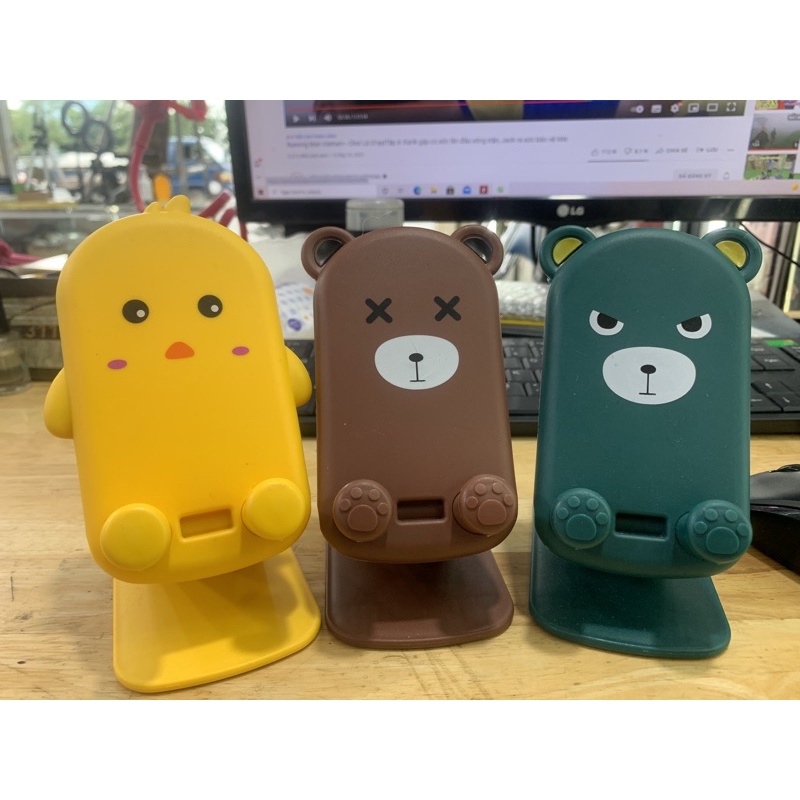 Giới thiệu Giá đỡ điện thoại Gấu Nâu Vịt Vàng dễ thương, Chân đế điện thoại để bàn điều chỉnh độ cao - TuHaiStore