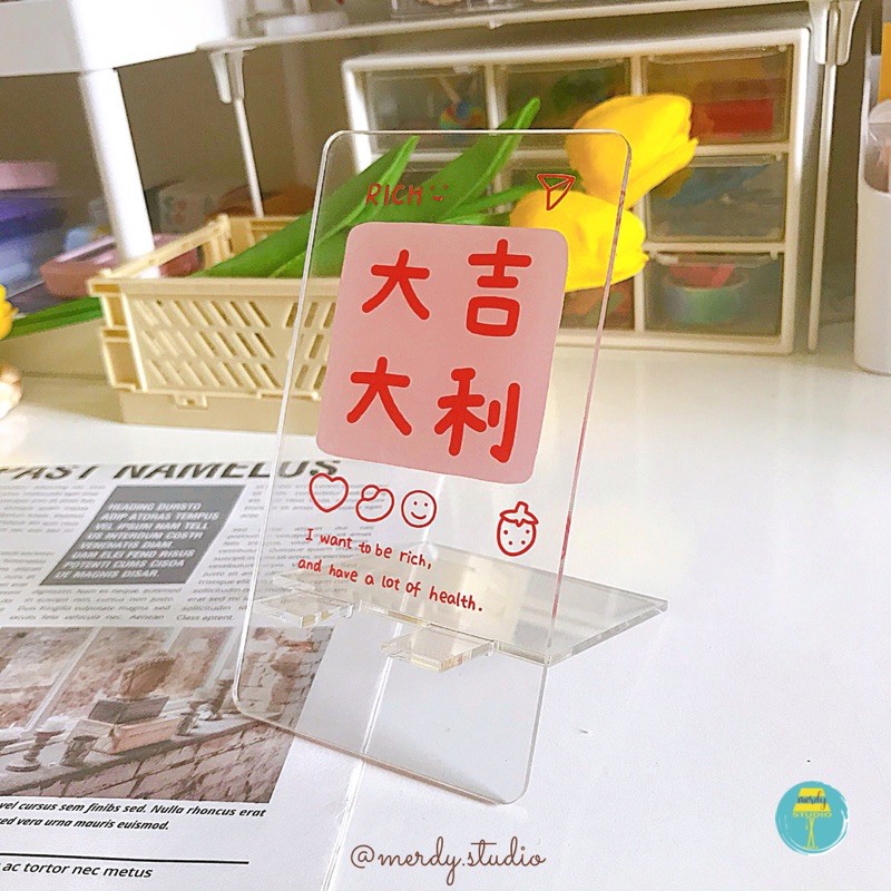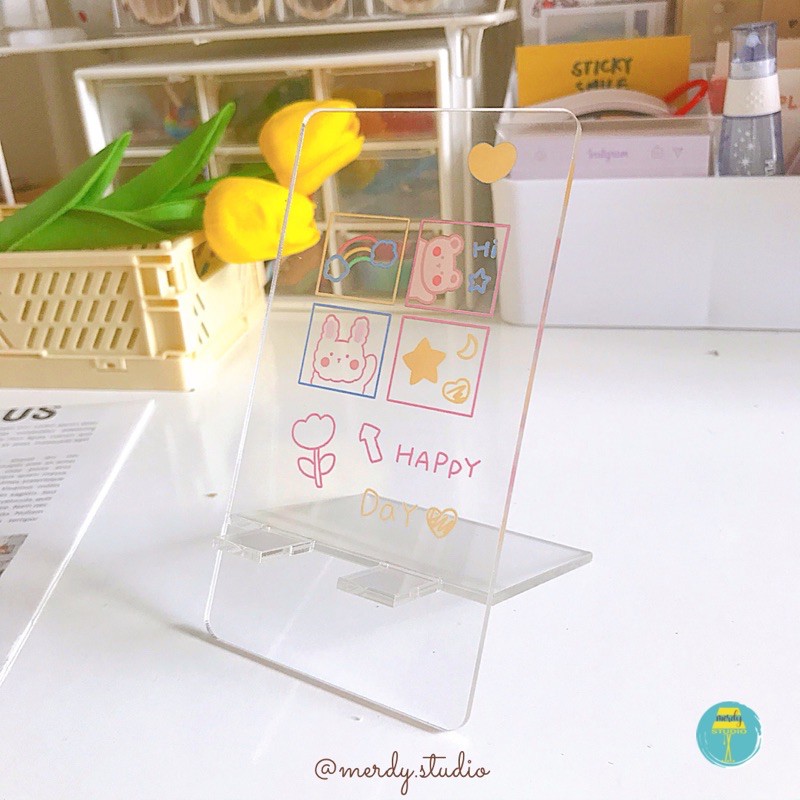 Giá đỡ điện thoại, giấy note bằng nhựa mica cứng trong suốt, hình ảnh cute decor bàn học