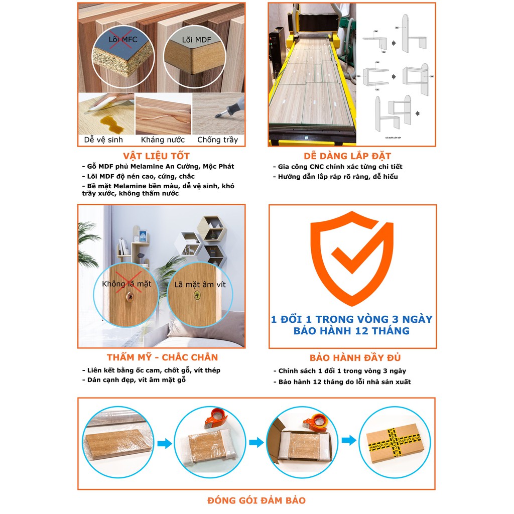 - Chất liệu: Gỗ MDF phủ melamin An Cường cao cấp dày 8mm