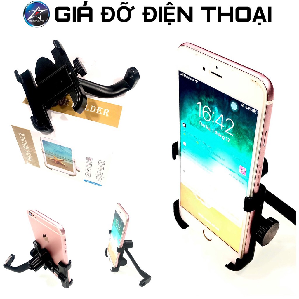 _Giá đỡ điện thoại Phone holder thiết kế tinh tế, làm bằng hợp kim bền đẹp, chắc chắn, chống rung, chuyên dùng cho phượt thủ, tài xế chạy xe máy công nghệ, shipper, được sử dụng thông dụng nhất hiện nay._Giá đỡ điện thoại trên xe máy mô tô Phone holder phụ kiện không thể thiếu cho những chuyến du lịch xa, dùng gắn điện thoại xem bản đồ dẫn đường hoặc dùng quay camera hành trình rất tiện lợi. Đầu kẹp tương thích với hầu hết các loại điện thoại thông minh có kích thước từ 3.5 inch tới 6 inch.