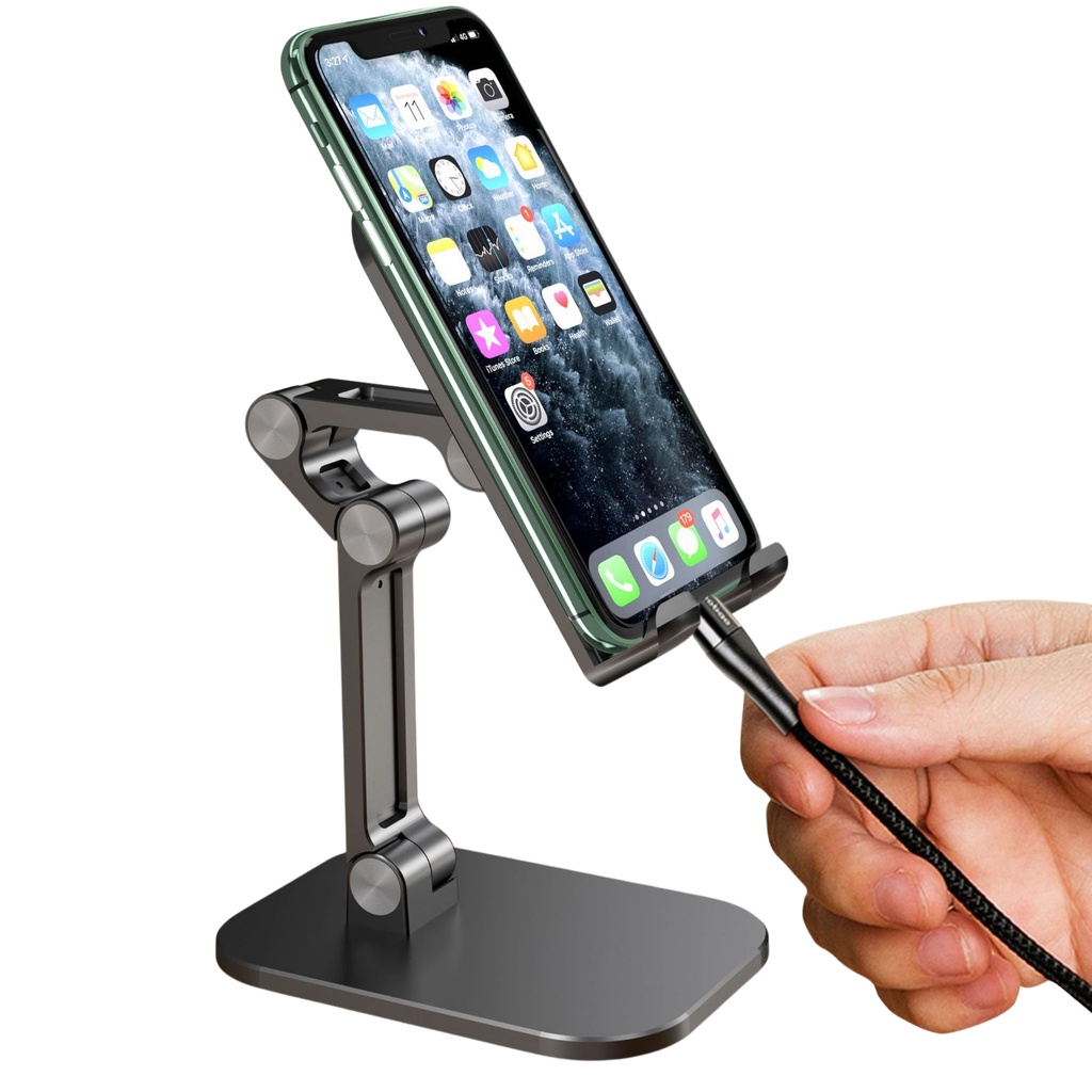 - Giá đỡ điện thoại để bàn, giá để máy tính bảng, ipad chống trượt, tiện dụng và thiết kế rỗng ở phía dưới có thể sạc thiết bị cùng một lúc, giúp thiết bị tản nhiệt tốt khi sạc.