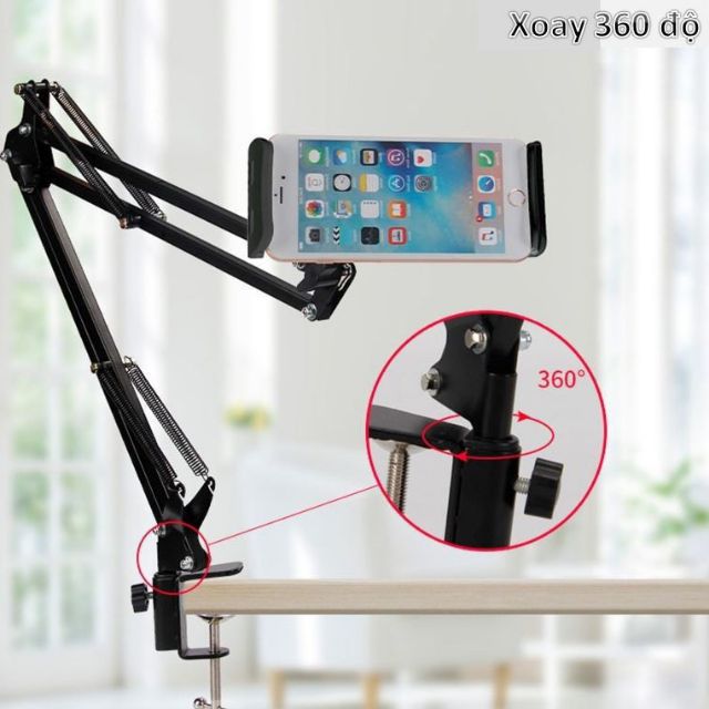 Giá Dỡ Điện Thoại, Ipad, Kẹp Điện Thoại Xem Phim,Kẹp Đầu Giường, Bàn Xoay 360 Độ