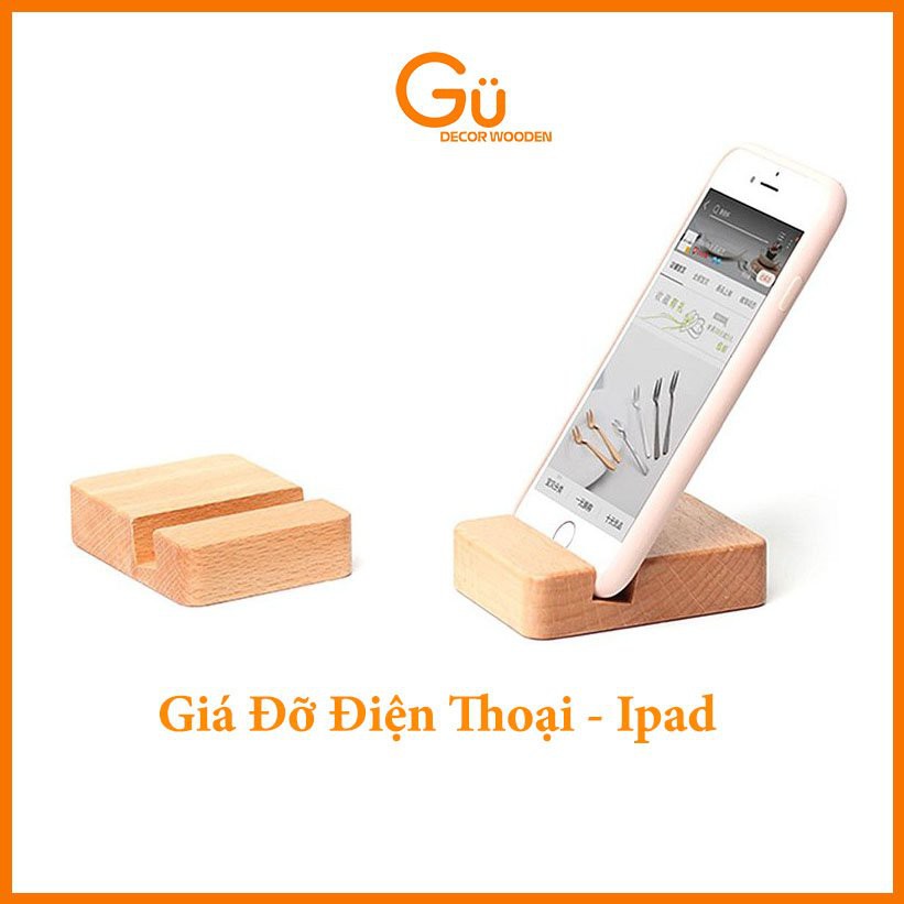 Gía đỡ điện thoại, kệ để máy tính bảng smartphone xem phim GU DECOR - Chất liệu Gỗ thông chống trượt