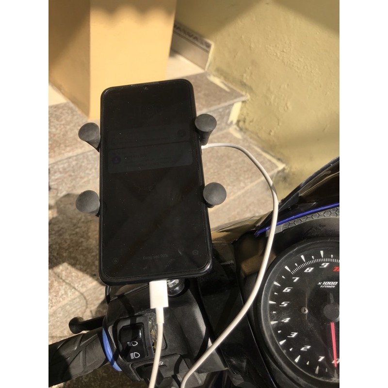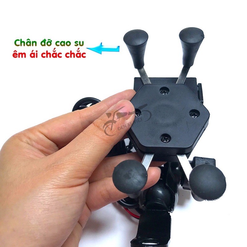 Chức năng: 2 TRONG 1,Phần khung thép chắc chắn và các cọc đệm cao su chống trơn, vừa làm giá đỡ điện thoại để anh em dễ dàng dùng các chức năng trong khi xe di chuyển, vừa có khe cắm sạc giúp điện thoại bạn luôn đầy pin dù ở bất cứ nơi đâu.