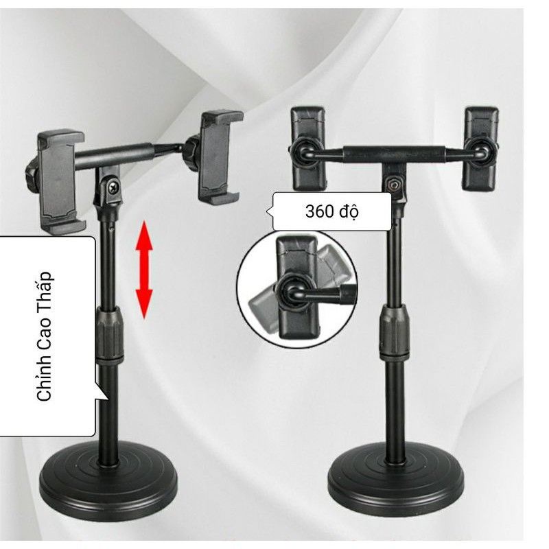 Giá đỡ điện thoại - kẹp điện thoại để bàn livestream 2 trong 1 chữ T