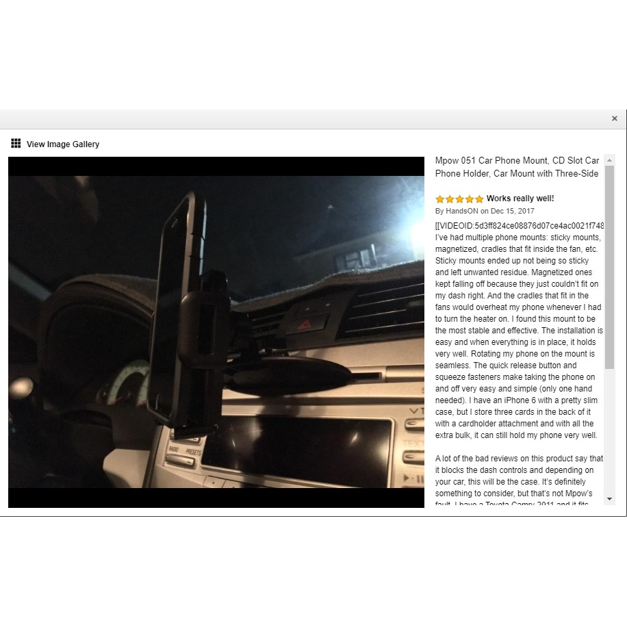 Giá đỡ điện thoại khe CD Mpow là một trong các sản phẩm cao cấp với tính năng vượt trội và tính tiện ích cao, dựa theo số liệu trên sàn TMĐT uy tín Amazon, tính tới tháng 11/2019, sản phẩm đã đạt được 4.4/5 sao - dựa trên 17.414 lượt đánh giá
