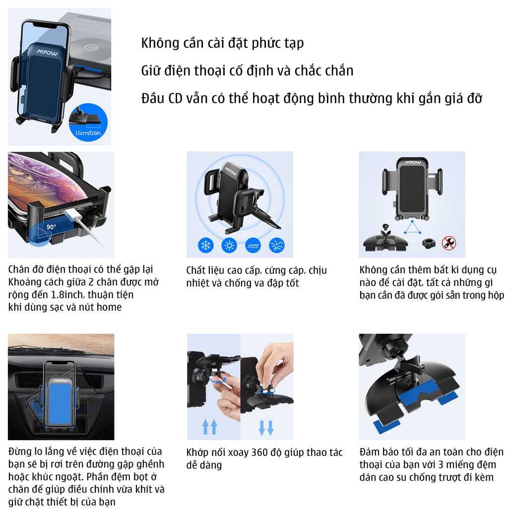 Giá đỡ điện thoại kẹp khe CD ô tô xe hơi Mpow - Hàng chính hãngGiới thiệu: