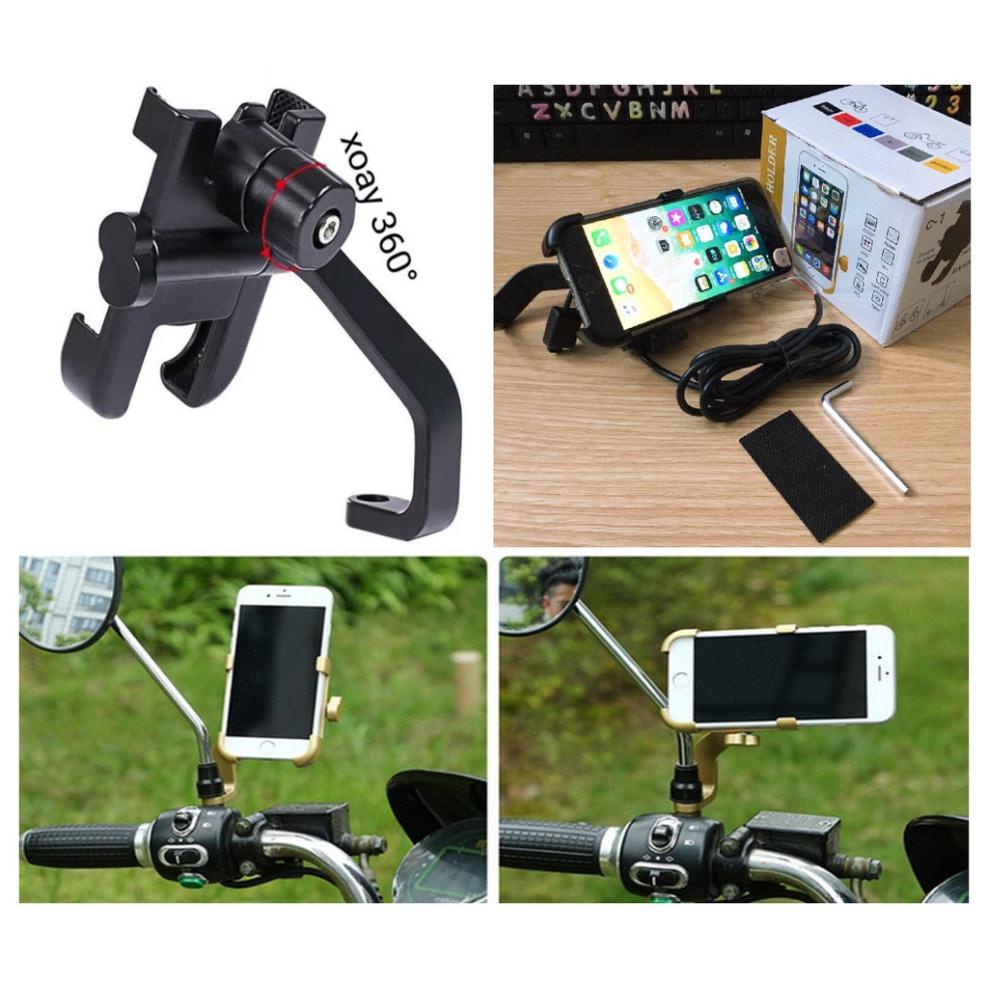 Giá đỡ điện thoại kẹp kính chiếu hậu xe máy CÓ CỔNG USB SẠC