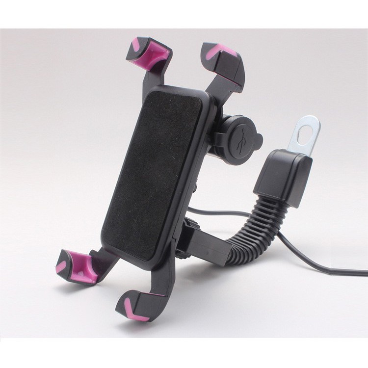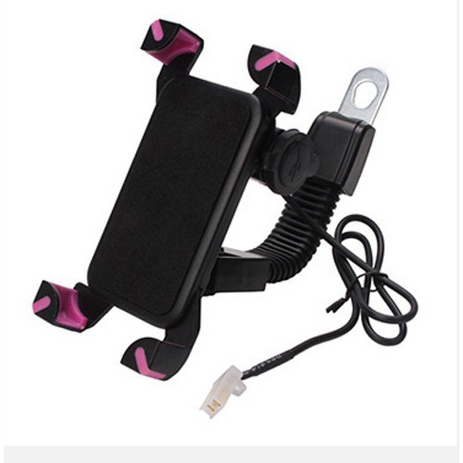 Giá đỡ điện thoại kiêm cổng sạc USB gắn chân gương xe máy